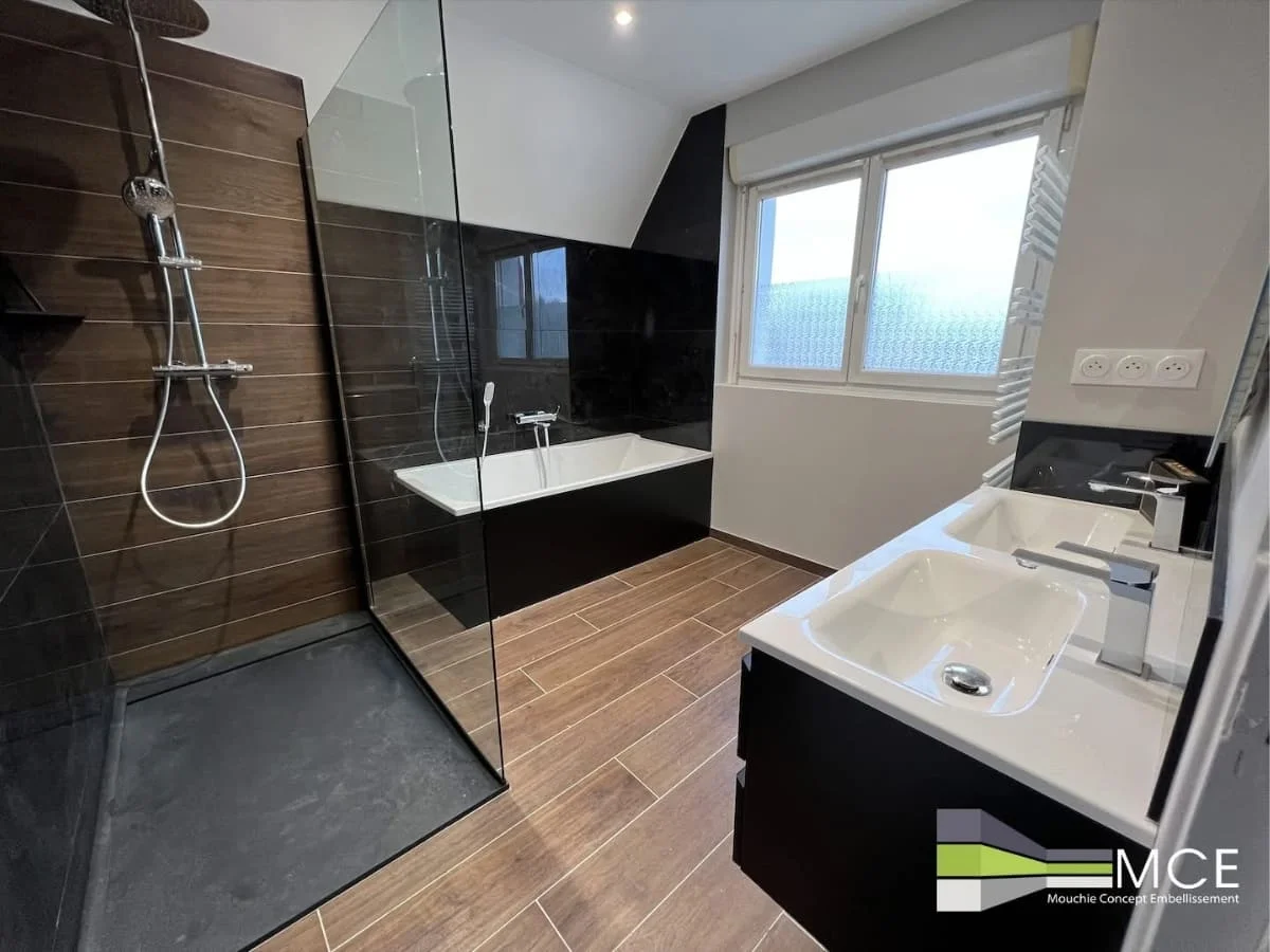 Notre force : une parfaite maîtrise de tous les travaux nécessaires (plomberie, électricité, carrelage, isolation, peinture, ventilation), pour vous livrer une salle de bain clé en main, prête à l’emploi.